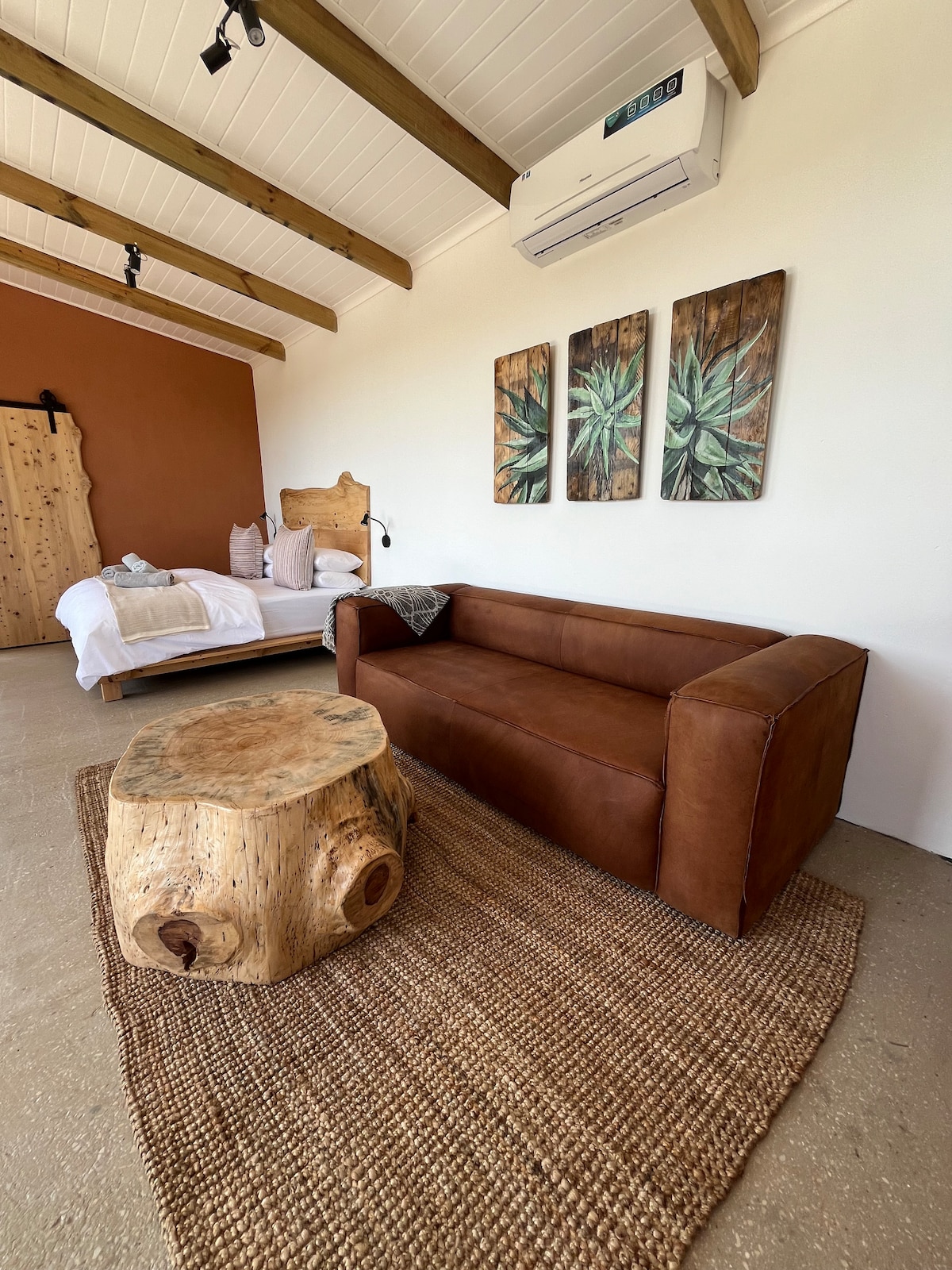 Valley View Escape offers two contemporary cabins overlooking breathtaking valley views. Each cabin sleeps four, featuring two en-suite bedrooms, an open-plan kitchen and lounge and private deck. Designed for nature lovers seeking comfort and calm, this earthy retreat blends luxury with the beauty of the outdoors. Whether you spend your days exploring the surrounding trails, stargazing under the clear Karoo sky or soaking in the wood fired hot tub. Valley View is your hideaway in nature.
