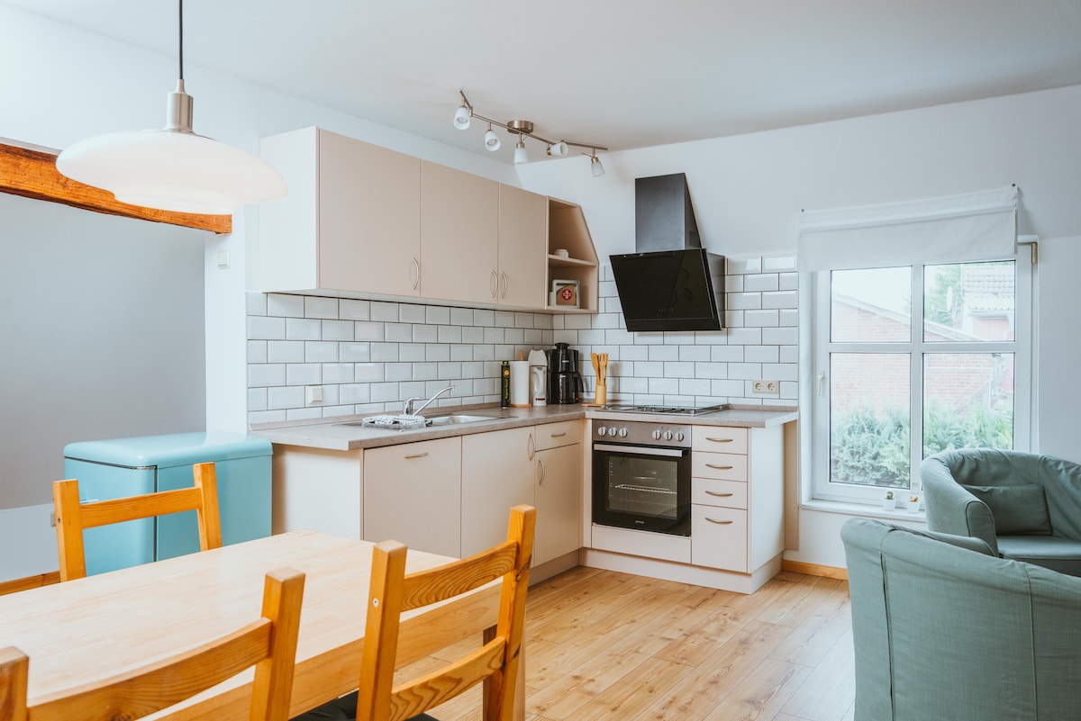Nuestra casa de campo, amueblada con mucho amor por el detalle, se encuentra a pocos kilómetros de Stralsund, a pocos kilómetros a pie del agua de Strelasund. Aquí hemos implementado nuestro sueño del "Lagom" nórdico y te invitamos a no hacer nada. Lagom, la palabra escandinava para el perfecto: no demasiado, pero no demasiado poco, relajado en equilibrio. La cabaña incluye un gran jardín con parque infantil, 3 espacios de estacionamiento y una casa de jardín.