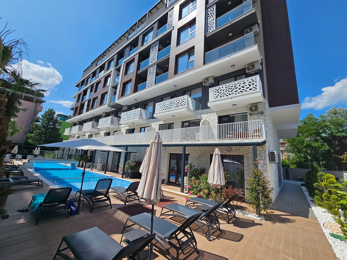 Brandneue Luxusresidence 2025 , Flagschiff Immobilie. Intime & luxuriöse Oase mit Flat screen TV, im Herzen von Sunny beach in der Nähe des Strandes. Nur 50 Apt. gesamt. Das 1 Zimmer Apt. ist top modern und hochwertig eingerichtet und hat einen schönen Balkon. Voll ausgestattet. Feines Geschirr & Besteck. Schickes Bad mit begehbarer Dusche. On SIte parking. Die Unterkunft ist eine intime Wohlfühloase mit allen Annehmlichkeiten und Liebe zum Detail und dem schönsten weitläufigstem Strand.