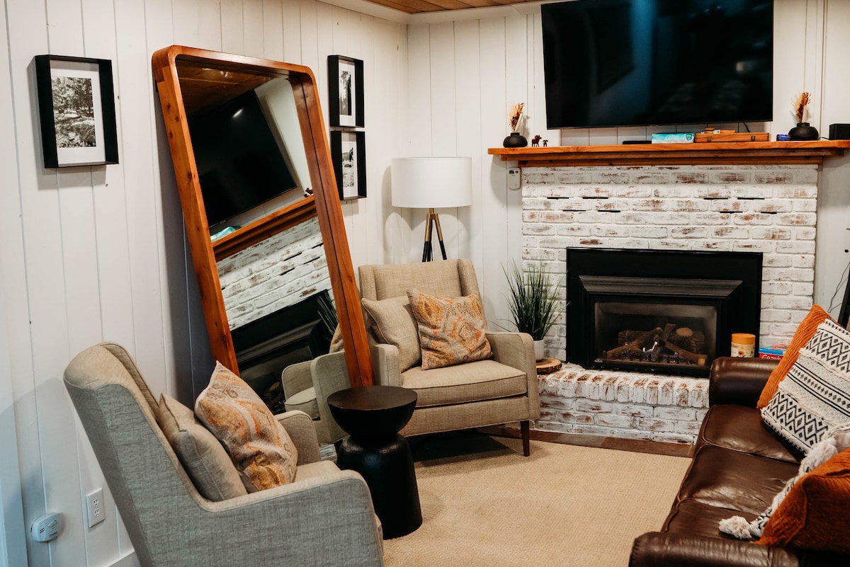 ¡Disfruta de nuestra escapada de lujo en cabaña en los pinos! Disfruta de las impresionantes vistas al prado mientras te alojas cerca de la ciudad. Nuestra moderna cabaña/villa es ideal para una familia que busca un viaje tranquilo a las montañas. Cama tamaño king, tamaño queen (sofá cama), baño grande con ducha y una cocina de tamaño completo. ¡Hay mucho que hacer a poca distancia a pie, como senderismo, golf con disco volador y pesca! Los restaurantes populares están a la vuelta de la esquina o haz un pedido y disfruta de tu elección de entretenimiento en dos sma