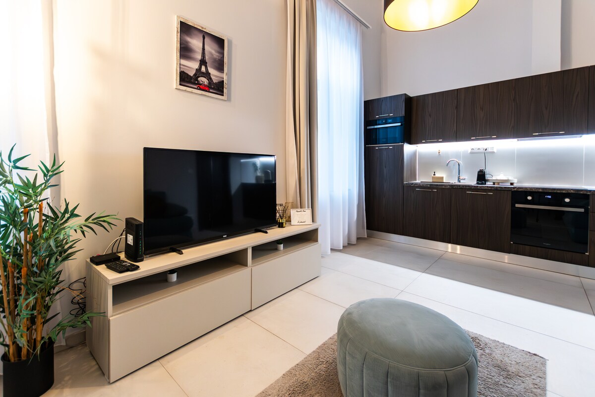 👉Az ár tartalmazza az idegenforgalmi adót és a takarítás díját is. Vat includes. The true downtown! The perfect apartment in the heart of city center, on the first floor! (on foot/ elevator) Everithing in walking distance (1-5 minutes), but the public transport is in the doorstep, too. Stylish furnitures, comfortable bed and everything you need! Liftes házban található apartman a belváros szívében. Minden karnyújtásnyira. Stílusos bútorok, kényelmes ágy, és minden amire szükséged lehet.