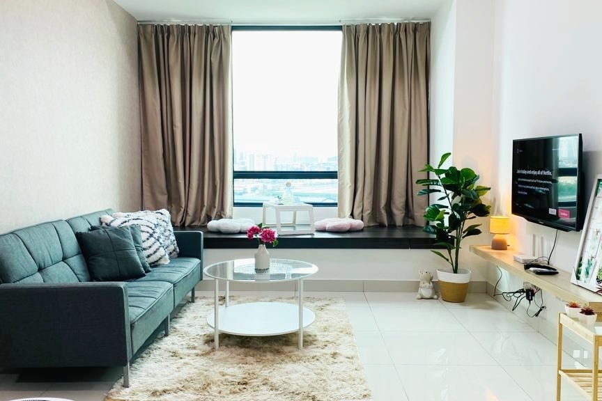 Surround yourself with style in this standout space. #Staycation #HaveFun AMENITIES: - 2 Super Single Bed in the master room - 1 Single Bed in the second room - 3 fresh Towels will be provided - Shampoo and Shower Gel - Washing machine (FREE to use~!) - FREE 1 parking - Hair dryer - Iron set - Fridge - Kettle - Induction Cooker - Microwave - WIFI (100mbps TIME Fiber) - Branded TV BOX (EV Pad) - Branded 4K Projector Screen (Over 120 inches) Check-in is from 3pm, and check-out is 11am