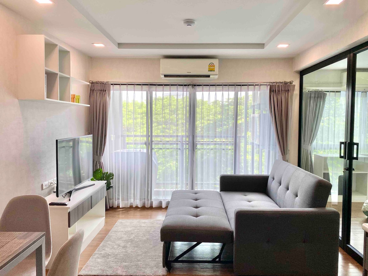 เงียบสงบ ทำเลดี smart tv 43 นิ้ว สำหรับดูหนังเรื่องโปรดใน netflix, wifi ฟรี เตียงยางพารารุ่นดังอย่าง lunio รองรับสรีระและส่งเสริมการนอนหลับให้คุณ ใกล้ 7-eleven ร้านสะดวกซัก ตลาดนัด mayfair market และร้านอาหาร บาร์ คาเฟ่อีกมากมายในโครงการ