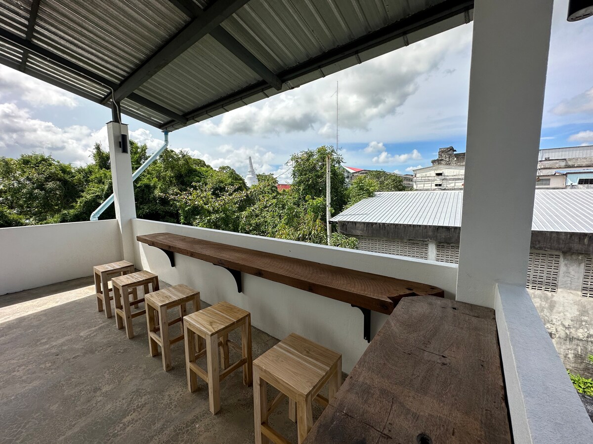 NormSpace es un hostal único como ningún otro, ubicado dentro de un edificio histórico con arquitectura "Art Deco". Organizamos un museo privado dedicado a la vida de un hombre local (Kru Norm), una cafetería acogedora y un centro comunitario local donde a veces se llevan a cabo talleres de pintura y artesanía. Nuestro comedor común está en una terraza con vistas a la pagoda "Pra Gnoen". ¡Ven a alojarte con nosotros y crea recuerdos inolvidables!