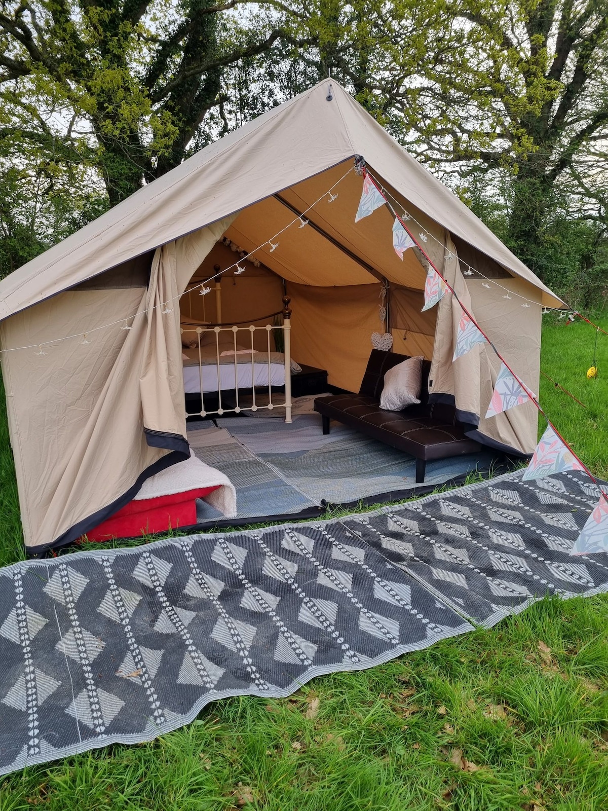 Preciosa zona privada, acogedora tienda de campaña con todos los lujos. Un montón de asientos al aire libre, adecuados para cenar al aire libre y relajarse en el entorno tranquilo. Inodoro e instalaciones de lavado (sin ducha/agua caliente) en el lugar. No tenemos electricidad en el sitio. Ten en cuenta que el precio para 2 adultos es si solo se requiere la cama doble. Si se requiere una cama adicional, esto tendrá un costo de £15 por noche (se enviará una solicitud de pago una vez que se confirme la cantidad de camas necesarias).