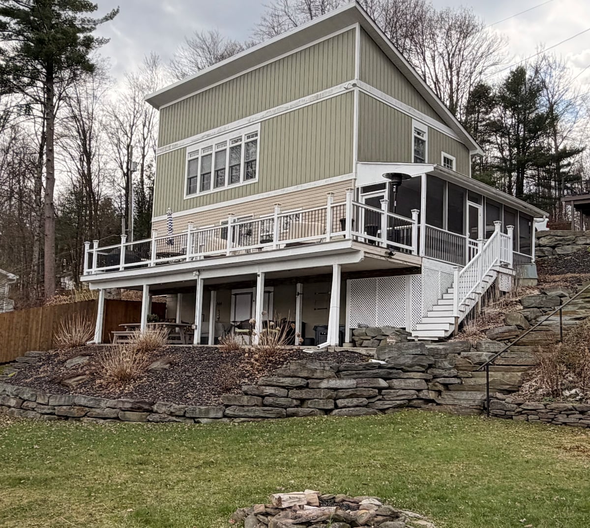 Si quieres escapar al bosque y a un lago, este es tu sitio. Estamos a 25 minutos de Binghamton, Nueva York, y a 35 minutos de Elk Mountain, Pensilvania. Nuestro alojamiento es cómodo y es tu hogar durante el tiempo que estés aquí. Casa completa con acceso al lago desde el patio, kayaks, canoa, barcos de remos, bote de remos y mucho más. Hay un pabellón, un fogón y una parrilla para barbacoa a tu disposición. Paz y tranquilidad sin motores permitidos en el lago. NO ESTÁN PERMITIDAS FIESTAS NI EVENTOS DEBIDO A LA COVID.