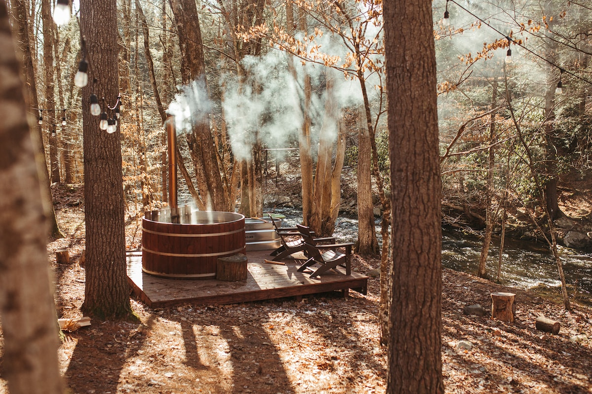 Un alojamiento verdaderamente único en las montañas Pocono, hogar de un terreno montañoso ondulado, cascadas impresionantes y hermosas, bosques prósperos, más de 170 millas de río sinuoso. Creado con la experiencia temática "la mejor noche en casa", los huéspedes pueden beber vino bajo las estrellas en un jacuzzi privado, y disfrutar de películas en su propia pantalla de cine de 135 pulgadas equipada con el primer proyector LED 4K para juegos del mundo. Disfruta de las habitaciones temáticas y experimenta una estancia donde el bosque te lleve mientras te hospedas con la máxima comodidad y lujo.