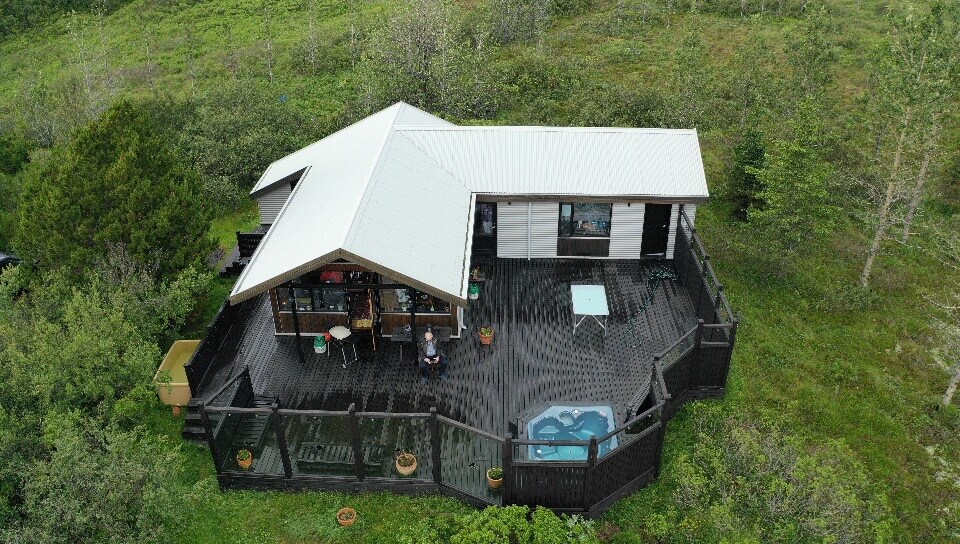 Escápate a tu propia hermosa cabaña de madera en la naturaleza islandesa, rodeada de árboles y silencio, pero a solo 15 minutos de Reikiavik. Aquí puedes sumergirte en tu bañera de hidromasaje geotérmica privada, ver las luces del norte bailar por encima y relajarte junto a la chimenea después de un día de exploración. Justo afuera, la pequeña zona vikinga junto al lago añade una sensación especial de calma y encanto de la que es fácil enamorarse. Este es un lugar para reducir la velocidad, sentirse como en casa y experimentar Islandia de una manera cálida y personal.