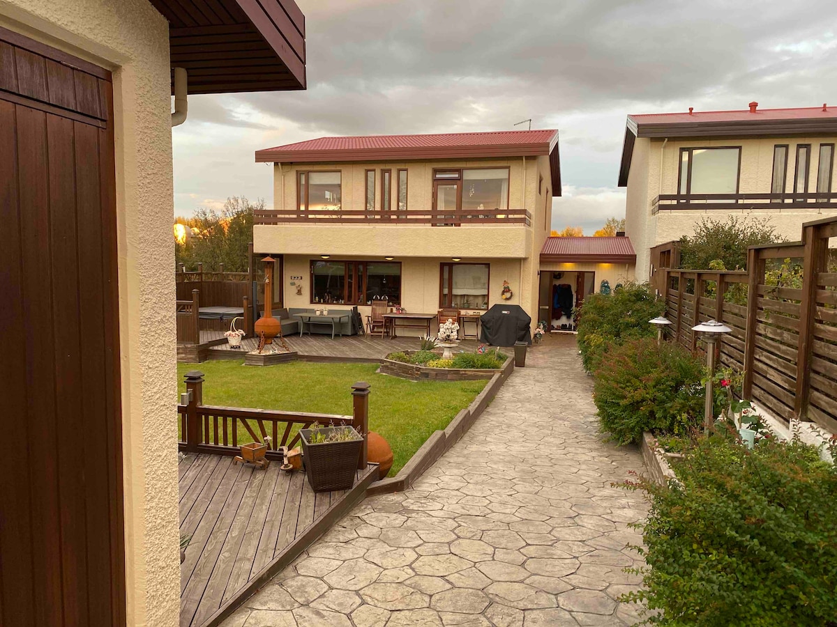 Nuestra lujosa casa con vistas panorámicas de 360 grados se encuentra en un exquisito parque natural a las afueras de Reikiavik. Cuenta con una cocina bien surtida, muebles elegantes, un baño precioso y camas nuevas cómodas, una king y una queen. La tercera habitación/oficina está abierta con una cama individual y hermosas vistas al atardecer. Alrededor de la propiedad hay un hermoso jardín de lava con una terraza que ofrece vistas espectaculares del parque natural, muchas caminatas, un lago romántico y un nuevo volcán cercano y la Laguna Azul.