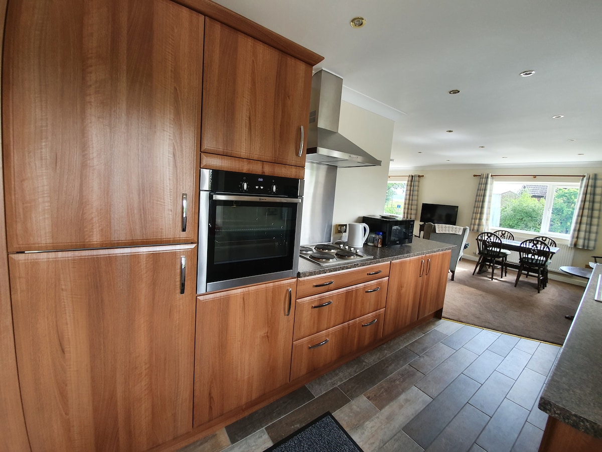 Tómate un descanso y relájate en este espacio rural tranquilo y elegante. Disfruta de pasar tiempo en un entorno de lujo, rodeado de tierras de cultivo y bonitas vistas con todos los servicios de tu hogar. Disfruta de las vistas desde tu cama tamaño king, la gran bañera independiente o el balcón Juliet. Relájate en la gran sala de estar viendo tus películas favoritas en el televisor inteligente de 75 pulgadas, wifi y sonido envolvente. Tienes una cocina equipada con cocina eléctrica con ventilador y 2 fogones para cocinar tus comidas y una mesa de comedor para comerlas.