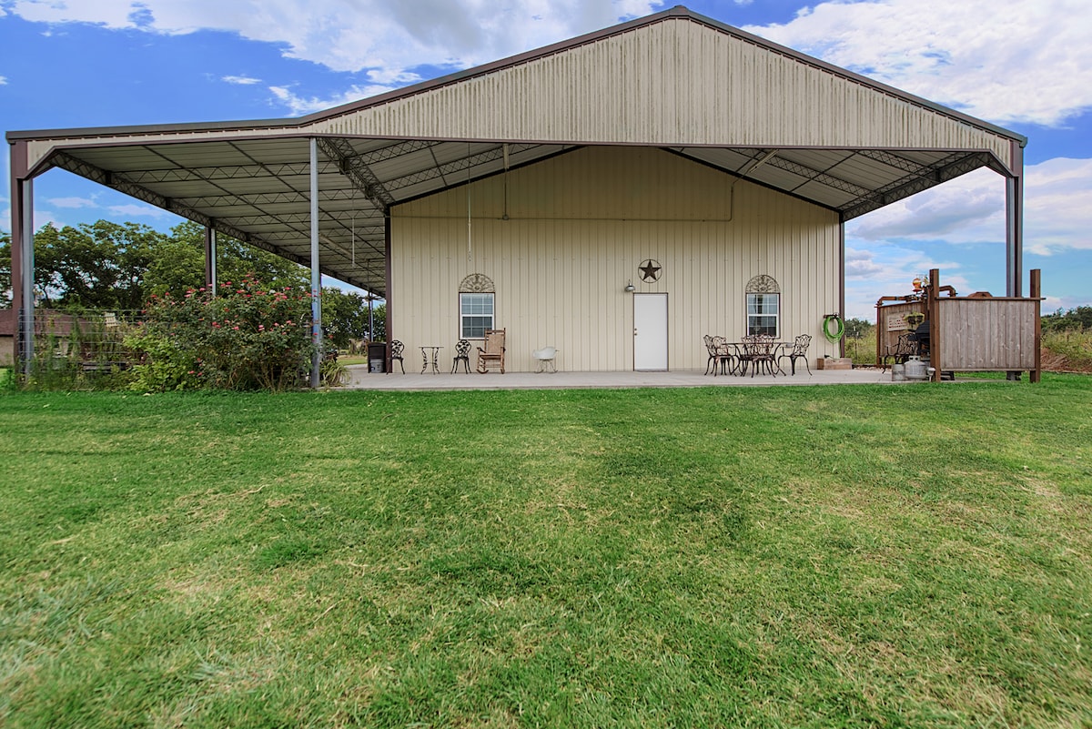 Our one bedroom (oversized bedroom, 2 queen beds, and a twin rollaway bed Queen sleeper sofa in living area) barndominium offers a comfortable stay. Abundant wildlife and amazing views from the covered porches. Complete with a barbecue pit outdoor dining area and an amazing outdoor shower w/hot/cold water. Sleeps 6 comfortably. Perfect for family meals. Large selection of DVD movies.