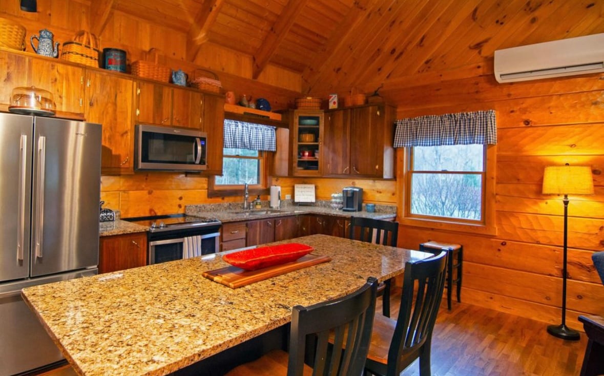 Disfruta de nuestra rústica, acogedora e histórica cabaña de troncos en el bosque en 21 acres con dos arroyos y un pequeño prado. Los troncos, de la década de 1800, se reconfiguraron hace 17 años combinando una rica historia con internet de alta velocidad y comodidades modernas. Sumérgete en la exuberante cama con sábanas totalmente orgánicas, cubrecolchón y almohadas. Da un paseo por la carretera original de la ruta de los carros hasta un arroyo o baña tus sentidos en la majestuosa vista de Jump Mountain desde el prado.
