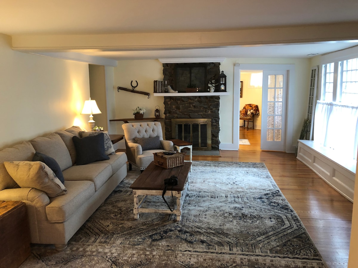 Reduzca la velocidad y experimente la vida en el campo en nuestra pequeña parcela de tierra. La casa de campo se encuentra en nuestra propiedad de 6 acres con una vista arbolada con vacas en el campo desde el porche delantero y una vista dulce de los patos en el estanque y ovejas pastando desde la ventana del dormitorio. Tenemos dos perros de montaña de los Pirineos, un gato y pollos. Puede haber ladridos ocasionales. Si se prolonga, los traeremos. Cocina totalmente equipada. Siempre hay mucho café, crema de café y bollos caseros para el desayuno.