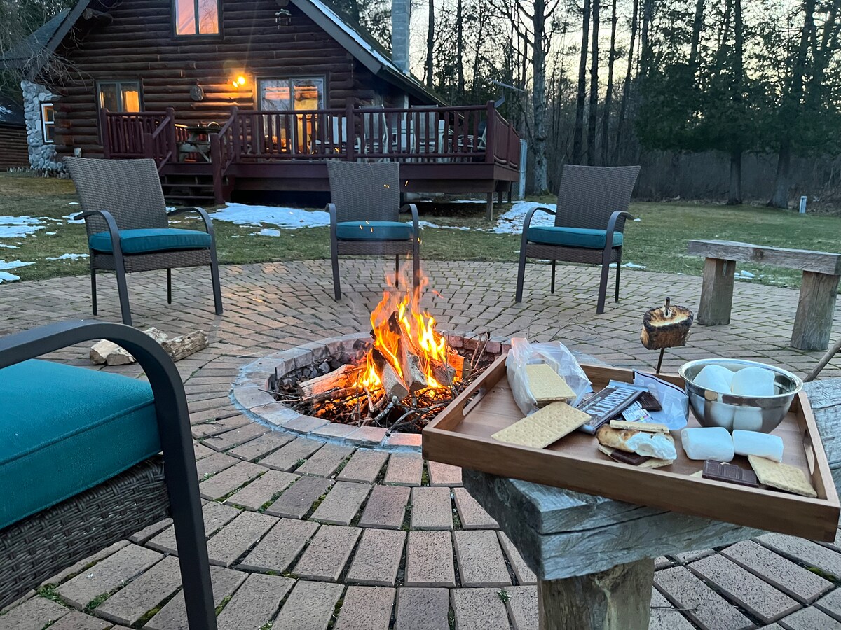 ¡Descubre tu oasis en Baldwin, Michigan! Ubicada en lo profundo del bosque, nuestra cabaña ofrece una escapada tranquila con la naturaleza a la vuelta de la esquina. Duerme profundamente en una acogedora cama tamaño king, litera o sofá cama. Relájate en la bañera de hidromasaje después de un día de pesca. Cocina en la parrilla y reúnete alrededor de la chimenea para historias nocturnas y juegos de cornhole. Muévete en nuestra hamaca entre los árboles susurrantes. Experimenta un paraíso de carretes, donde los sueños de pesca y la serenidad del bosque cobran vida. ¡Te damos la bienvenida a tu refugio aislado!