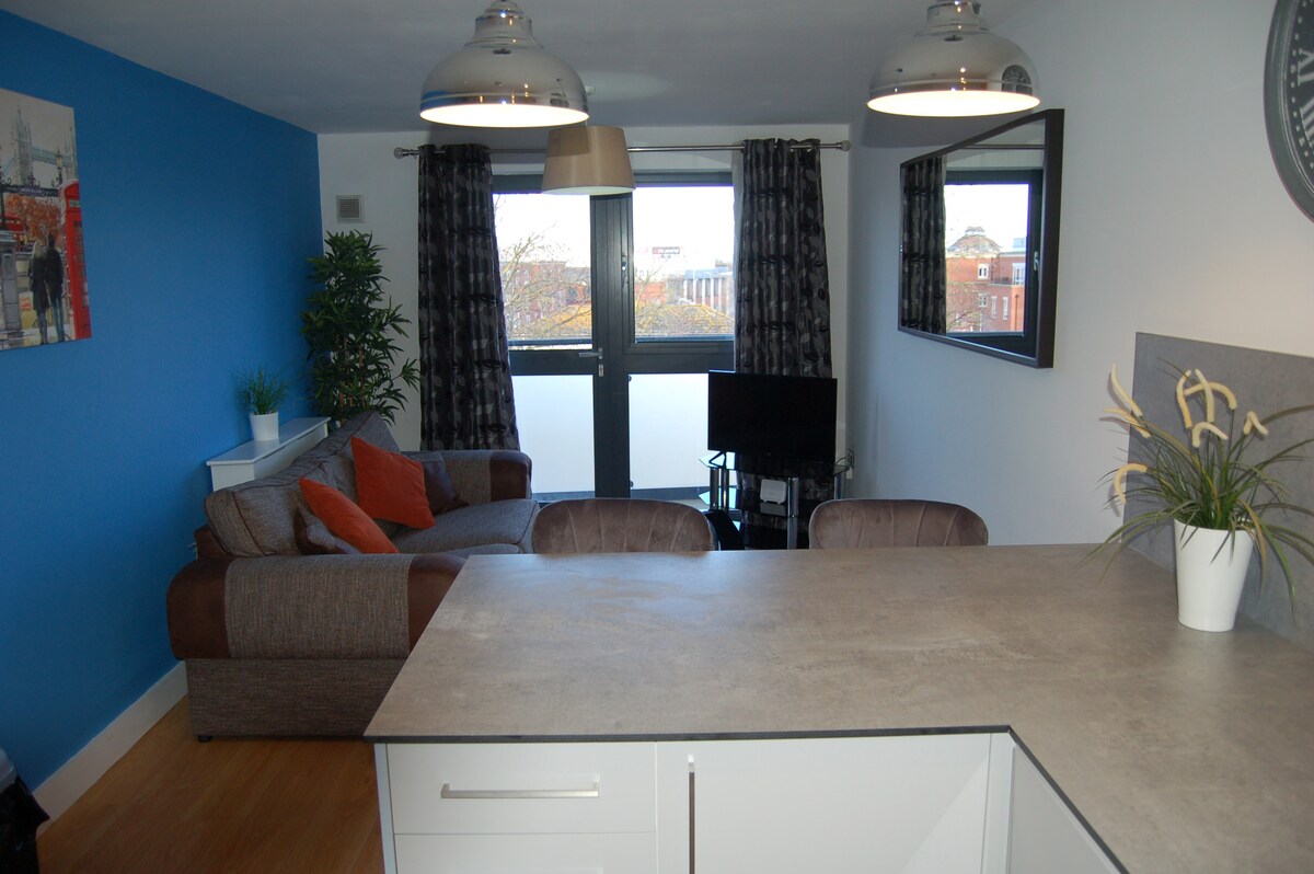 Apartamento de 1 habitación en el centro de Swindon con estacionamiento y wifi