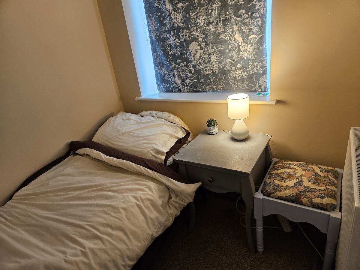Small private annexe nr town centre. Free parking opposite side of road. On-site if booked. Kitchenette -microwave oven, kettle, coffee machine, fridge, freezer, sink. This is not a full kitchen. Compact shower room, small hand basin/w.c. Desk/breakfast bar power sockets. Kingsize bed. Easy walk to Rugby railway station Town-5 minute walk. Wifi/ Freeview Please ask for unlisted items if needed. Laundry next door- washing machine available from 08:00 until 19:00. Dryer/ hanging rail on request.