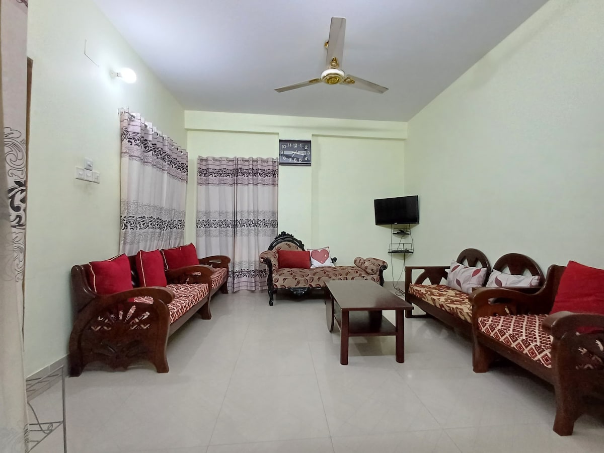 Este elegante alojamiento es perfecto para viajes en grupo. Amplias salas de estar, comedor de 30x20 pies perfecto para enormes reuniones y fiestas. Casa, muebles y electrodomésticos renovados completamente nuevos. La vista al cielo de toda la ciudad de Sylhet se puede ver desde la azotea y los cómodos balcones grandes. Ubicación perfecta en el corazón de Sylhet, a poca distancia a pie de MC College, Govt College, Rab Office, Mejortilla Bazar y muchos más lugares. Hay aire acondicionado y agua caliente disponibles dentro de toda la casa.