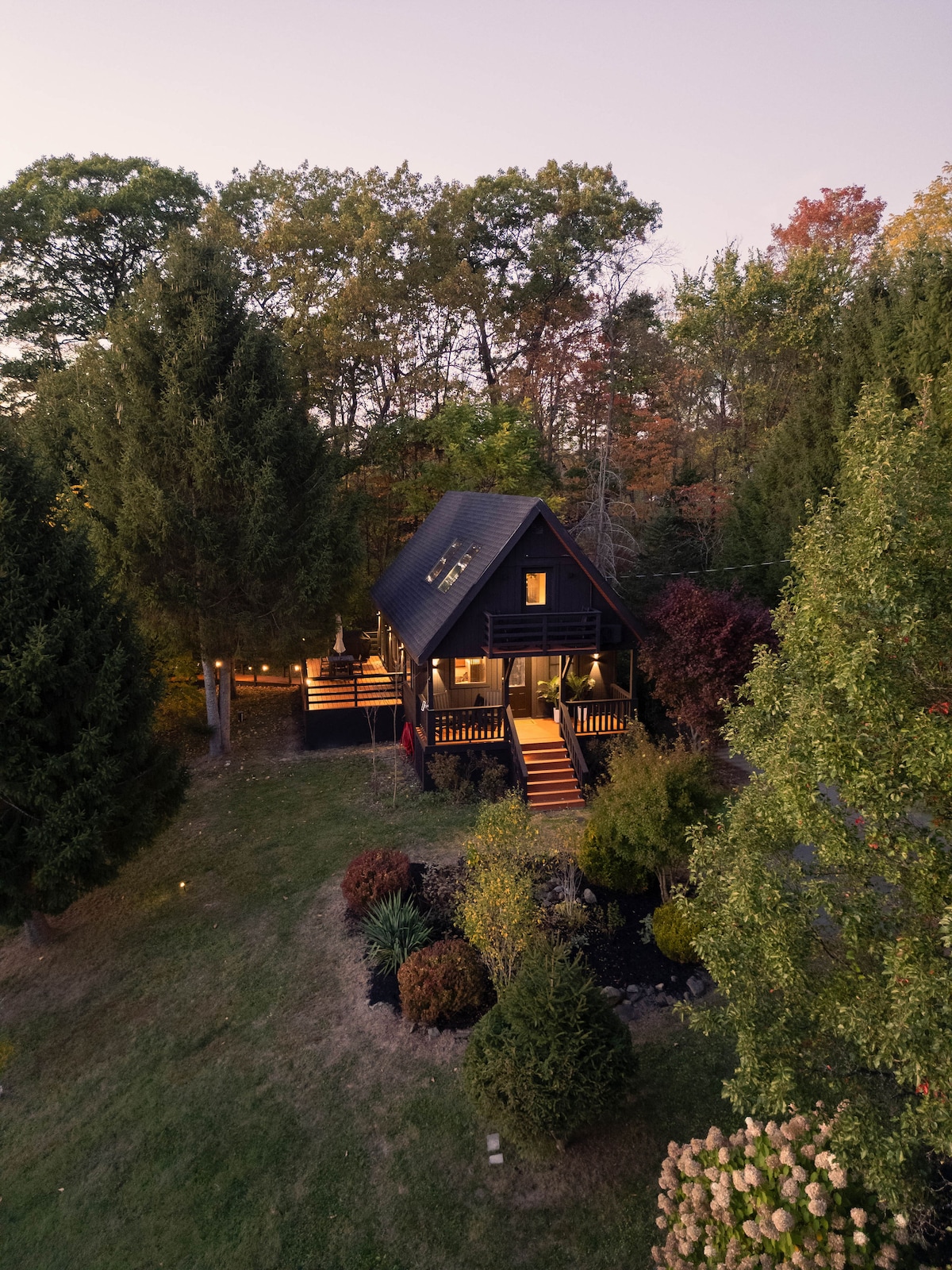 Bienvenido al Oasis Skylight ubicado en 10 acres de terreno en un entorno natural. Un refugio elegante que combina lujo y naturaleza con techos abovedados, un elegante diseño de madera negra y natural y ventanas panorámicas. Disfruta de una cocina de chef totalmente equipada, acogedores rincones personalizados y una bañera profunda en el loft. En el exterior, relájate en la sauna y el spa del jacuzzi o junto al hermoso estanque, todo rodeado de serenas vistas a la montaña.