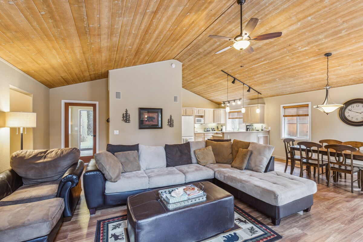 Preciosa cabaña de 3 dormitorios con terraza privada en Truckee 8 huéspedes 3 dormitorios 6 camas 2 baños Situada a 15 minutos del centro de Truckee, esta encantadora cabaña de 3 dormitorios/2 baños ofrece la escapada perfecta a Tahoe. Entra en calor junto a la chimenea de leña, relájate en la espaciosa terraza o juega una ronda de futbolín en el loft. Capacidad para 8 personas. DESCRIPCIÓN DE LA PROPIEDAD Una planta abierta con techos abovedados, suelos de madera y una moderna decoración de montaña crean un ambiente acogedor, con una gran cantidad de espacio interior y exterior.