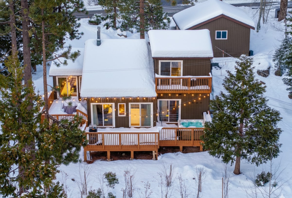 Nuestra acogedora casa de montaña de tres dormitorios incluye una bañera de hidromasaje privada, chimenea de gas, sistema de sonido doméstico Sonos y una sala de juegos con mesa de billar y tablero de dardos. Nuestra casa está a solo 20 minutos de muchas estaciones de esquí (Northstar, Palisades y Homewood), a solo 5 minutos del lago y a 2 minutos a pie del bosque nacional. Carnelian Bay está justo en medio de Tahoe City y Kings Beach, lo que te ofrece libertad y flexibilidad para disfrutar al máximo de tus vacaciones en North Lake Tahoe. Es una vida de ocio.