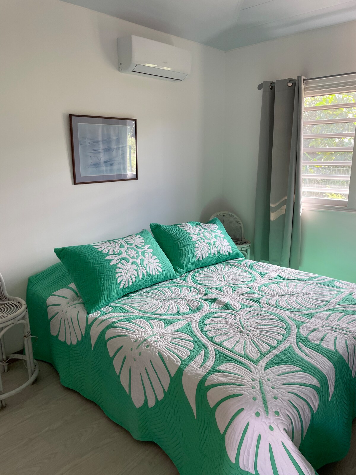 Bungalow dúplex independiente, frente al mar, situado en una propiedad privada. 1 habitación con aire acondicionado con 1 cama grande de 2 plazas + 1 sofá cama. Una zona de cocina y baño. Terraza privada exterior en jardín junto al agua. 2 kayaks disponibles para acceder al banco de arena a 100 metros del faré y al lugar de surf de Taapuna, a 800 m. Aeropuerto internacional /inter-islas a 10 minutos en coche. Supermercado abierto las 24 horas a 10 minutos andando. Restaurantes, aperitivos y caravanas cerca.