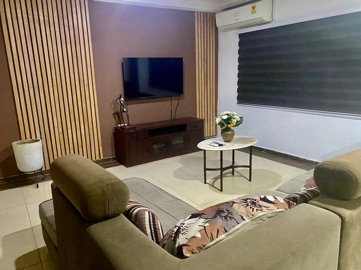 Adéntrate en un mundo de confort y lujo con nuestro impresionante apartamento de tres dormitorios en el corazón de Abelenkpe, Acra. Diseñado para alojar hasta 6 huéspedes, este apartamento ofrece tres camas tamaño queen que redefinen la comodidad. Para nuestros viajeros de negocios, tenemos una sala de oficina equipada para satisfacer todas sus necesidades de trabajo desde casa. A 15 minutos del aeropuerto internacional de Kotoka. A 25 minutos de Mokola (distrito central de negocios de Acra). Proximidad a la Escuela Comunitaria Lincoln. Corazón de Abelemkpe.