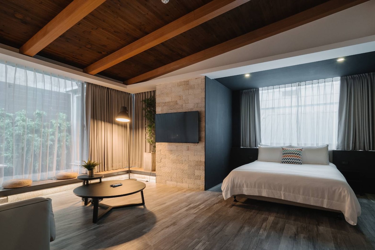 室內的灰白主色,配搭北美木紋銅色傢俱及家飾, 用心為您的居住空間提供沈靜優雅的感覺。日韓系電器的選用,不論是無線充電藍牙喇叭 ,大螢幕伸縮高清電視 ,都能滿足您對影音效果的要求。房源位於高樓內縮樓層,阻絕不必要的噪音並滿足您對景觀 ,安靜及隱私的要求。大樓並配有全天候警衛,住戶專屬電梯 ,公用大露台 ,以及地下收費停車場, 位處西門町核心路段,無論搭乘捷運或自駕都非常方便。El diseño interior basado en el tono de la tierra ofrece una atmósfera cálida, tranquila, curativa y encantadora. Instalaciones de la habitación, incluyendo cama doble, baño privado con ducha, aire acondicionado, televisor inteligente 4K con películas/Netflix, Internet WIFI, iluminación de la cala y reproductor de música con conexión inalámbrica y puertos de cargador USB.