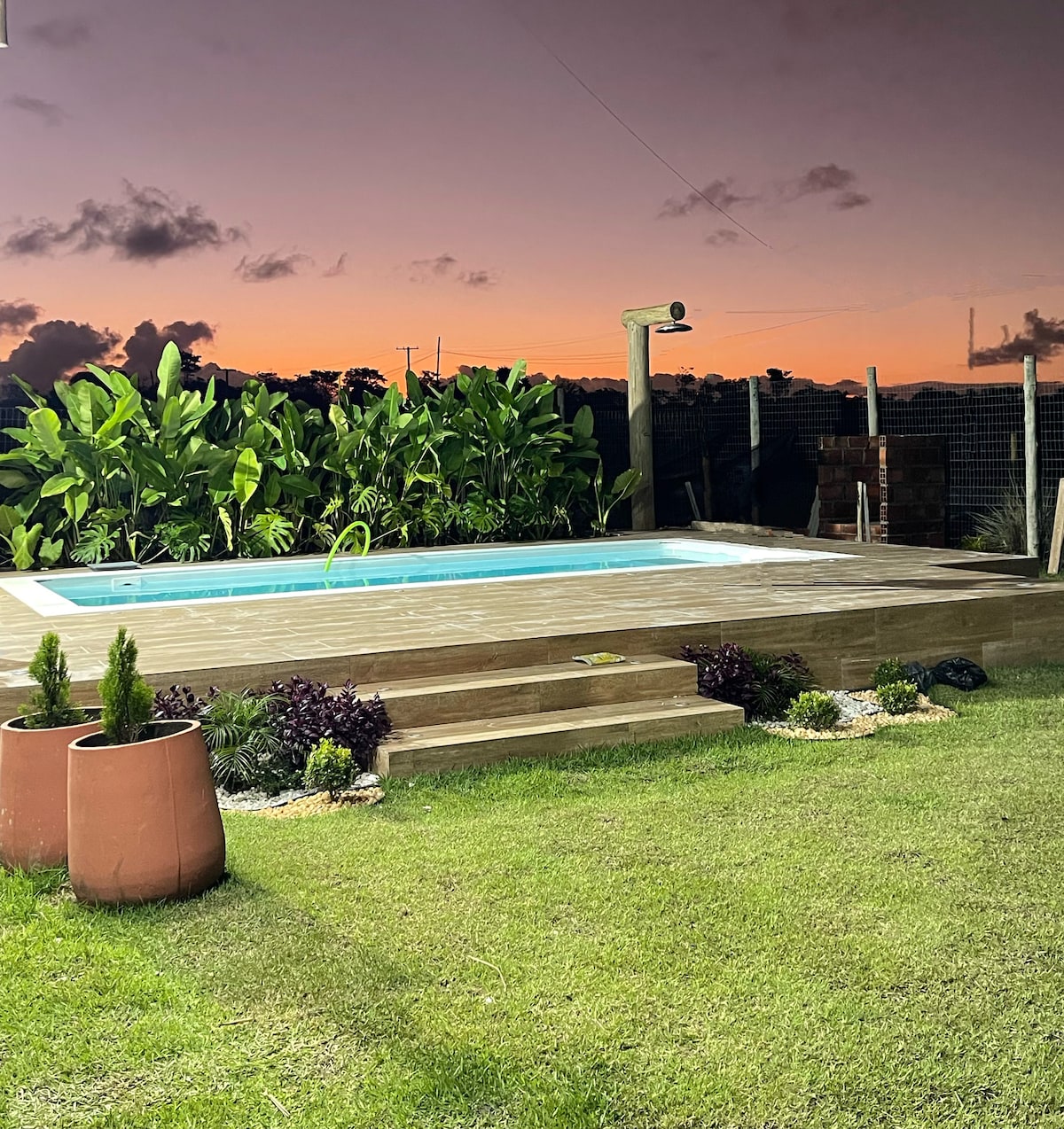 Bem-vindos ao nosso cantinho de charme e aconchego. A Casa Makai oferece o conforto que acolhe de verdade. Ambientes amplos e arejados, decoração suave e cantinhos pensados para relaxar. Do lado de fora, o lago convida a pausas longas, a piscina convida para mergulhos resfrecantes e os olhares se perdem no horizonte durante o pôr do sol.