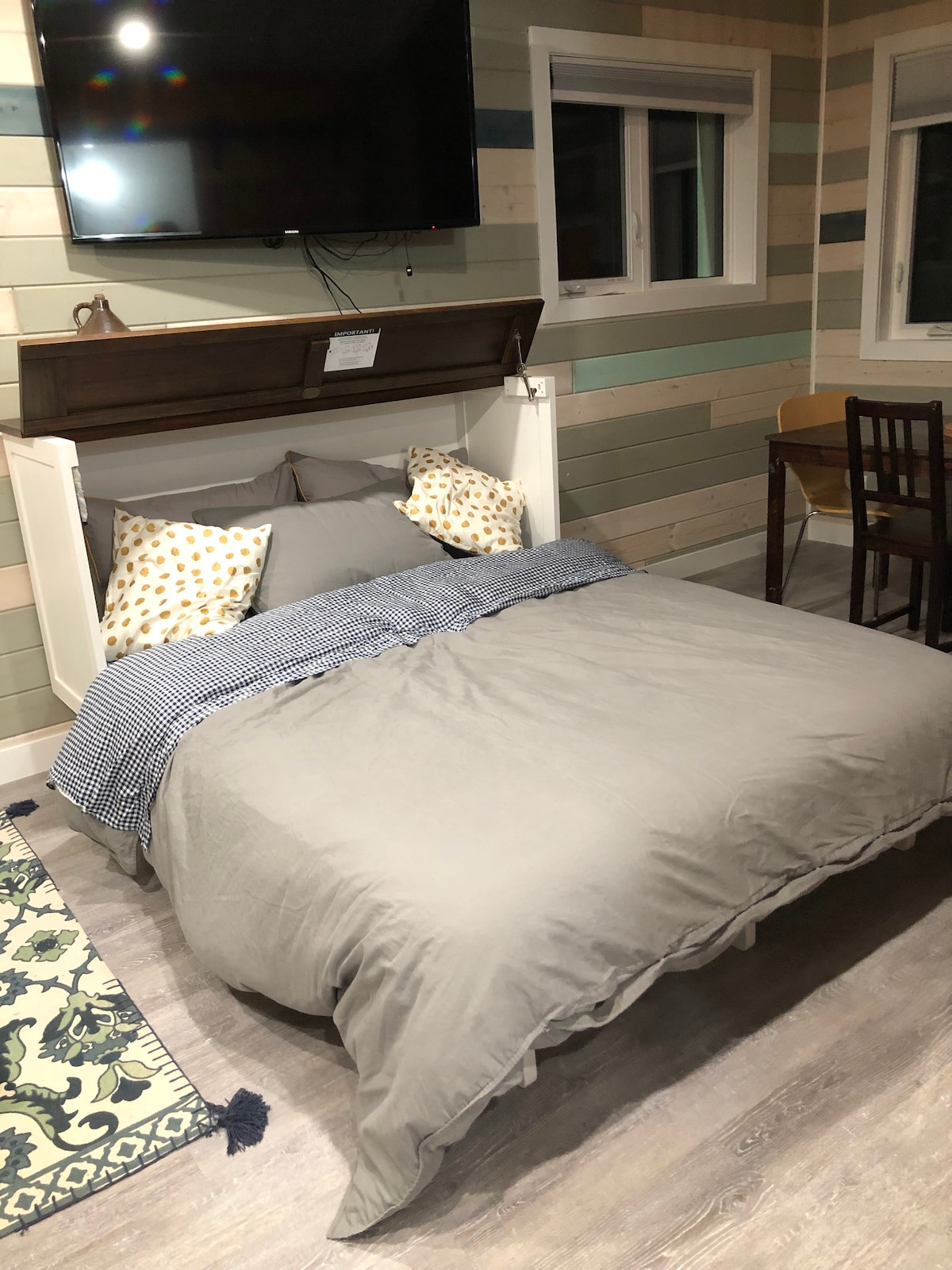 Relájate en este espacio elegante y tranquilo. Situada a 15 minutos de la ciudad en auto, la suite es de 1 dormitorio, 1 baño construido en 2023. El dormitorio tiene una cama loft sobre la cama tamaño queen. La propiedad de 3,7 acres se apoya en un sinfín de espacios verdes y senderos. La suite contiene una terraza superior de 400 pies cuadrados que tiene hermosas vistas a la montaña y puede ser ideal para ver las luces del norte. La terraza tiene muebles de patio y una chimenea de propano. Junto a la suite de alquiler hay una casa de madera en la que viven los propietarios.