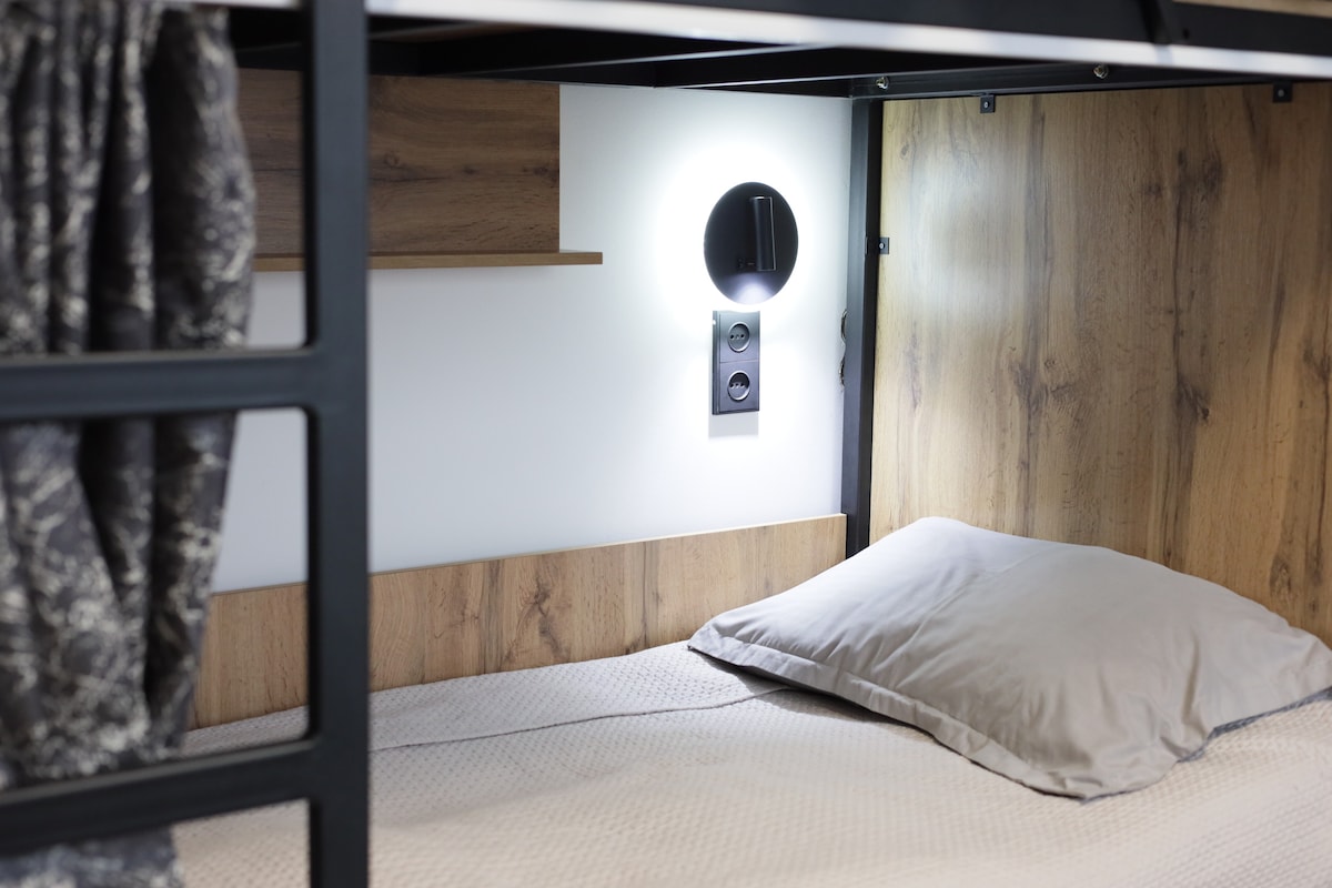 Luxx Aparts es un hostal moderno y elegante en Almaty con acogedoras habitaciones compartidas. Perfecto para turistas, estudiantes, autónomos y nómadas digitales. Cómodos lugares para dormir con cortinas, wifi, cocina, espacio de trabajo compartido y ambiente agradable. Limpio, seguro y cómodo: todo lo que necesitas para relajarte, trabajar y conocer gente nueva.
