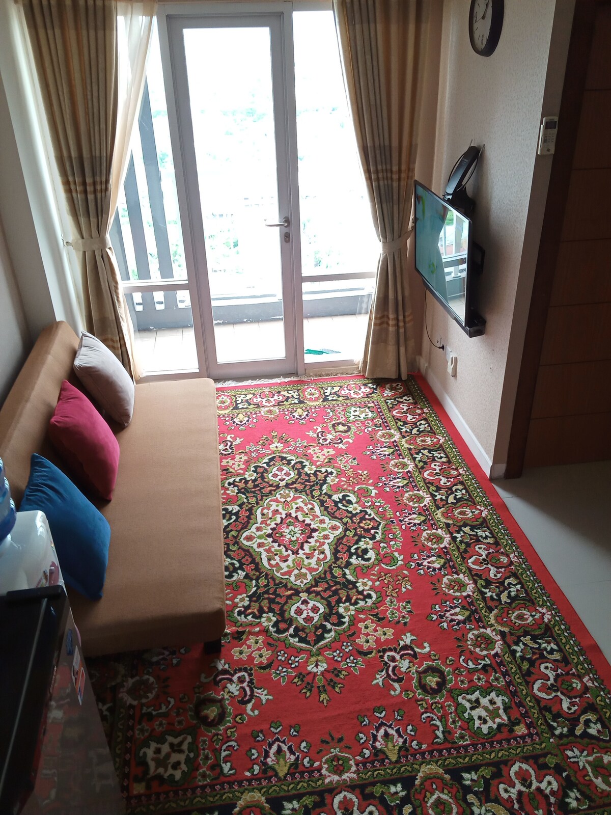 Suites tipo 2 dormitorios Tamaño : 80 m² -Fridge - Cafetera - Dispensador de agua. - Lavarropas. - Utensilios de cocina - Utensilios para limpiar - Wifi. - Calentador de agua. -Balconies - Televisión - Plancha de ropa - Línea de ropa plegable -prei/funda de cama -Electricity 3850 Watts Prestaciones 1. Piscina 2. Gimnasio 3. Seguridad las 24 horas 4. Acceso a la tarjeta 5. Electricidad y agua 7. Sala de eventos múltiple 8. Altitud del piso 31 en la azotea * Tarifa promocional de septiembre a octubre * Diariamente Rp1.5jt/malam Monthly Rp25.jt/bulan 1 año IDR 200m * La tarifa de mantenimiento es a cargo del propietario de la unidad *