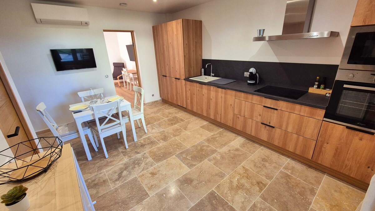 Impresionante apartamento de 70 m² en una pequeña residencia nueva y tranquila con dos plazas de aparcamiento gratuitas, que consta de dos dormitorios con aire acondicionado, una sala de estar luminosa, una cocina abierta, un lavadero con lavadora y una terraza de 11 m² con vistas abiertas. Wifi, televisión. Situado a 10 minutos de la playa, a 15 minutos de la montaña y el río y a 5 minutos de todos los servicios.