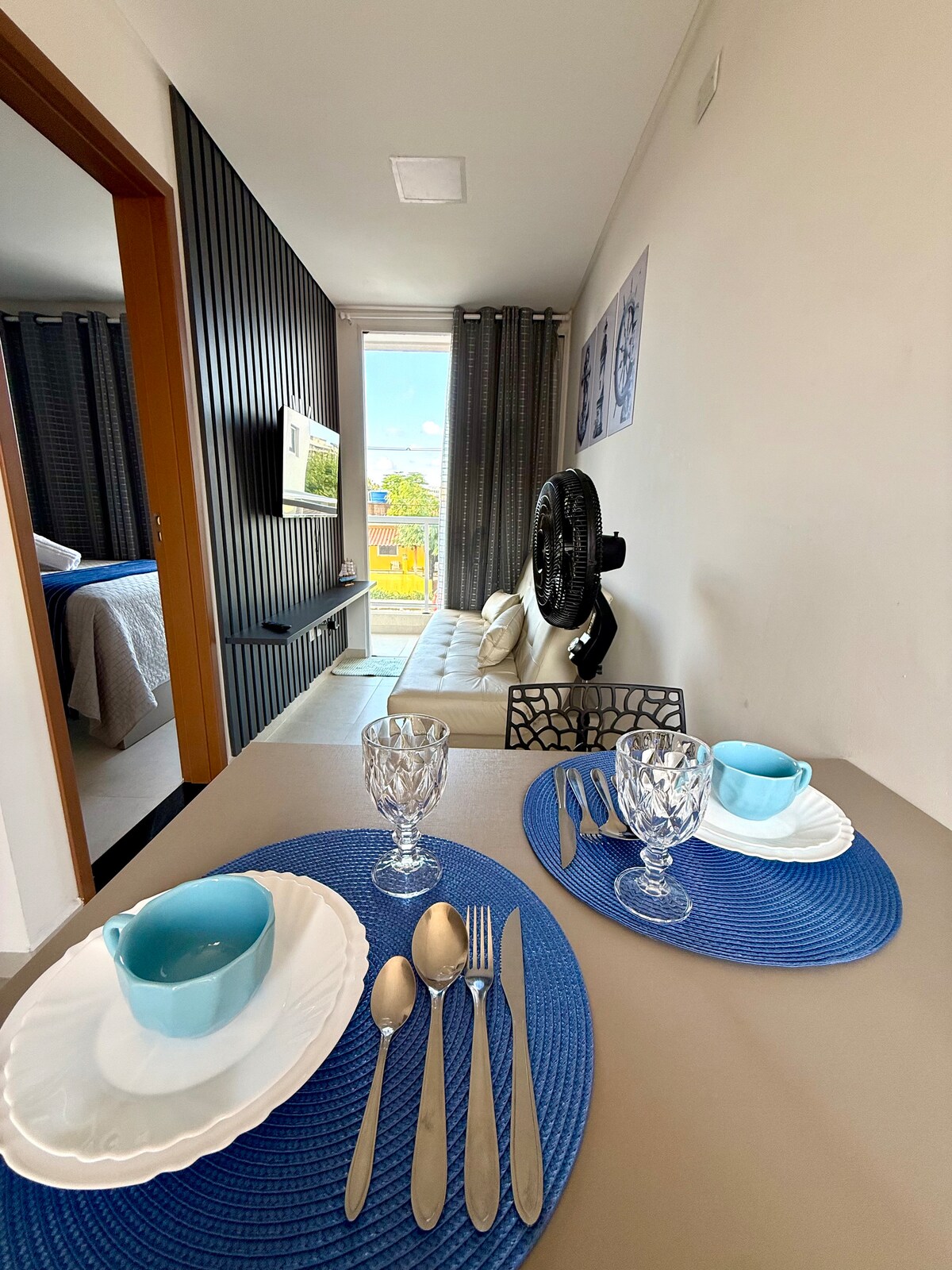 El apartamento está en la planta baja, tiene un dormitorio, con baño, agua caliente, TV por cable, Wi-Fi, aire acondicionado split, horno microondas, cocina, minibar, parrilla, freidora de aire, licuadora, cafetera, cubiertos y platos, olla y sartén. Tiene capacidad para un máximo de cuatro personas, tiene una cama doble y una cama individual, limpieza y cambio de sábanas diarias si es necesario. Check-in a las 14:00 y check-out a las 12:00 (puede ser flexible si está disponible, pero puede entrar en el hotel antes de las 14:00).