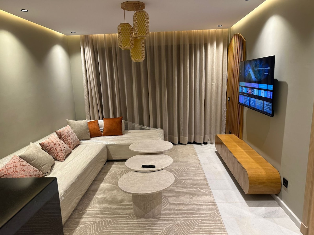 Découvrez le luxe dans le quartier des princesses à Casablanca. Notre appartement chic allie équipements modernes et une décoration élégante pour un séjour inoubliable. Avec un emplacement idéal: proche du stade 🏟 mohamed 5 et de Casablanca finance city. l’appartement est entouré des grands centres commerciaux des boutiques haute gamme des restauratans gastronomique et des grandes surfaces. l’appartement contient un ameublement haut de gamme et des équipements essentiels et moderne.