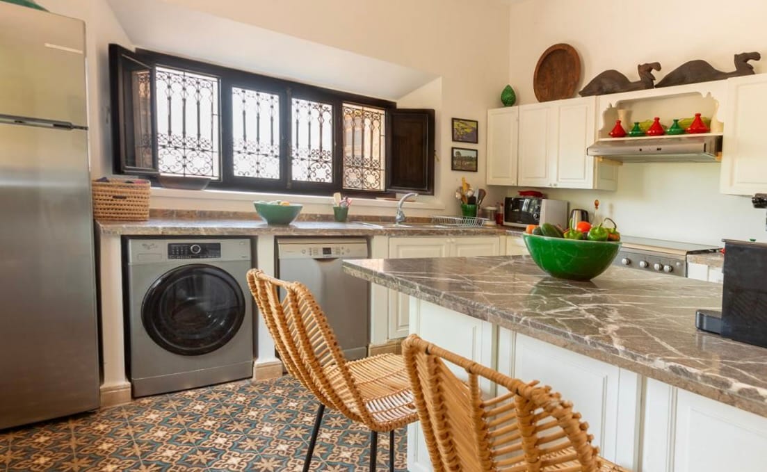 Esta villa tradicional de estilo kasbah está a solo 25 minutos en coche de Marrakech y a 15 minutos del aeropuerto. También está muy cerca del campo de golf Assoufid. Hay una cama doble con baño privado y una habitación con dos camas individuales y otro baño familiar. Ubicado en 5 acres de olivar, es un lugar ideal para relajarse lejos del bullicio de Marrakech. Disfruta del uso exclusivo de una gran piscina y una terraza privada en la azotea. Crea recuerdos inolvidables en este alojamiento único ideal para familias.