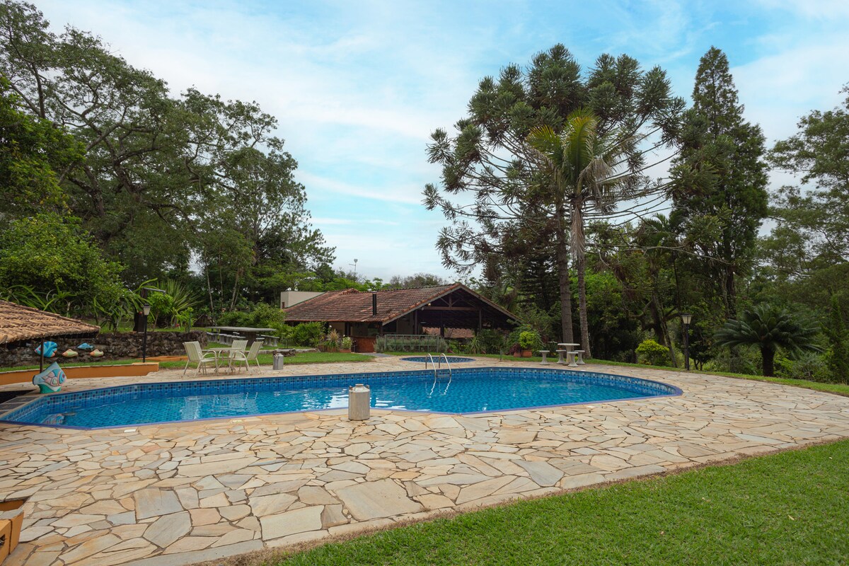 Casa de campo tradicional con 650 metros cuadrados de construcción de 8 suites y 5000 m2 de jardines apoyados en la ciudad de Tambau, São Paulo.