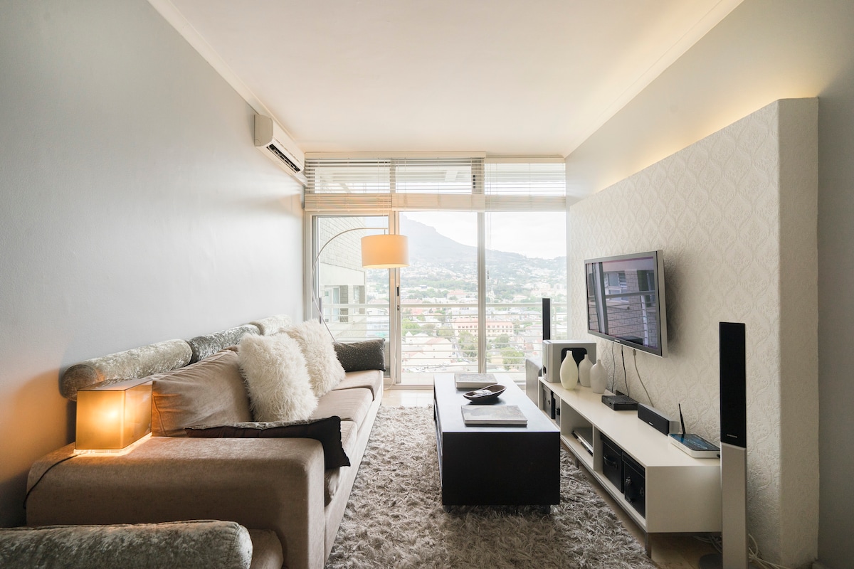 An elevated stay above. Ideal for travellers seeking mountain sunrises, comfort, and fast Wi-Fi. Spacious 18th floor (152sqm) penthouse with 360 views of Table Mountain and the harbour. Two bedrooms (King + Queen) with crisp quality linen, plus a comfortable double bed option for extra guests. Extra guest charge applies after four. Central and walkable to countless landmarks, cafés and galleries. Designed for those who see beauty in contrast - mountains, sea, sky, and city in perfect balance.