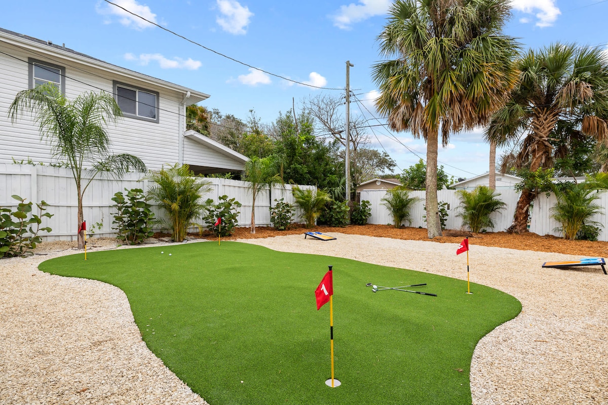 Welcome to your easygoing beach getaway in Indian Rocks Beach—a cozy two-bedroom home designed for families looking to relax, play, and make memories together. Kids and adults alike will love the private backyard putting green, perfect for friendly competitions and outdoor fun without ever leaving home. The outdoor seating area makes it easy to enjoy family meals, morning coffee, or winding down after a day in the sun. Inside, the home is comfortable and welcoming—ideal for movie nights, game