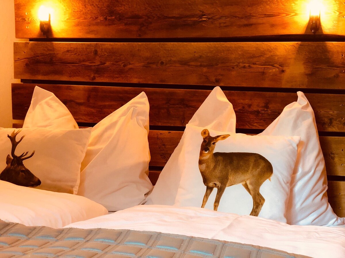 Departamento renovado de alta calidad de 120 metros cuadrados con cocina moderna de ensueño, sala de estar rústica con sofá gigante y sistema de cine en casa (Sky, Netflix, etc.), acogedora estufa de azulejos, baño grande (ducha de vapor, bañera, tocador doble, lavadora secadora, barras de secado) y un gran guardarropa. 3 habitaciones dobles (2 personas cada una) Opcional: 1 sofá cama en la sala de estar (2 personas) Además, ¡bodega de esquí asociada, amplia zona al aire libre con jardines y animales de granja y plazas de aparcamiento asociadas!