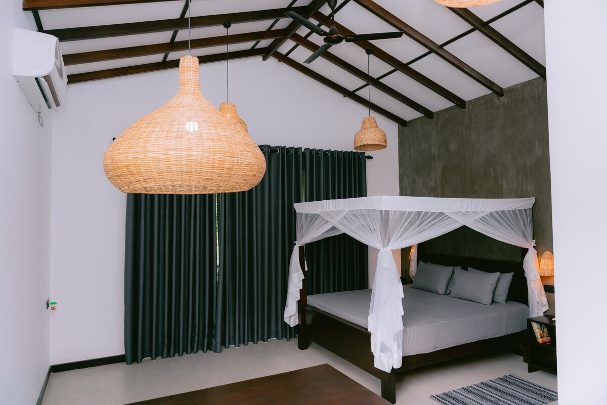 Escápate a Cashew House Mawella, un tranquilo refugio junto a la playa rodeado de naturaleza. Esta villa privada de dos dormitorios está situada en un extenso jardín lleno de exuberantes anacardos y cocoteros, y vida silvestre local, incluidos pavos reales, monos y mariposas. A solo unos pasos de la playa de Mawella, este es el lugar perfecto para relajarte, rejuvenecer y volver a conectar con la naturaleza `.