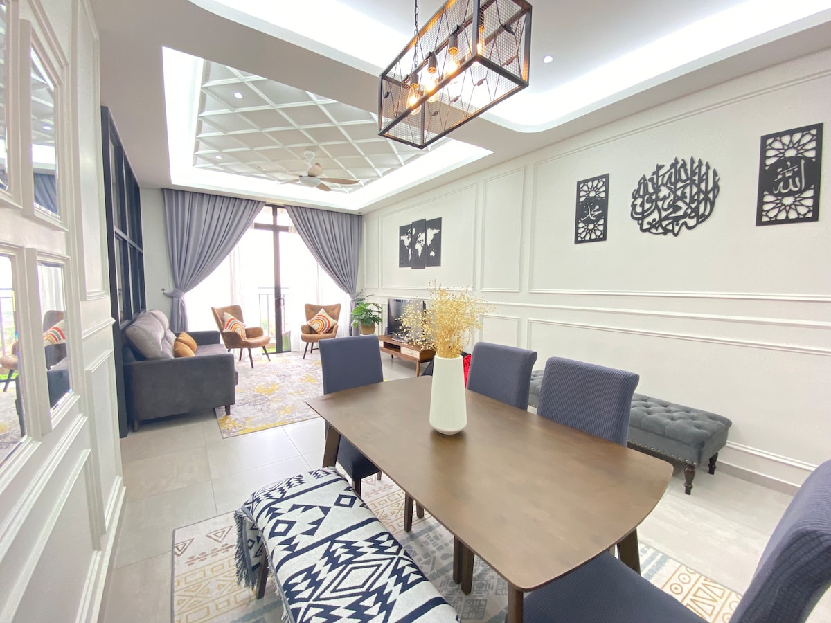 ¿Cuántas personas pueden alojarse aquí? El apartamento tiene capacidad para 4 personas y es cómodo para 6 personas. Está ubicado en el corazón de la ciudad de Melaka y a solo 3 km del edificio histórico A'Famosa y del edificio Studthuy's. Instalaciones: Ofrecemos aparcamiento GRATUITO para 1 coche en el nivel 2. Otros pueden aparcar en la planta baja. Lista de servicios que se proporcionan dentro de la casa: Este elegante apartamento también cuenta con 2 camas tamaño queen y 1 sofá cama plegable tamaño queen, 1 toto adicional, TV LED de 60 pulgadas con Android, wifi, etc.