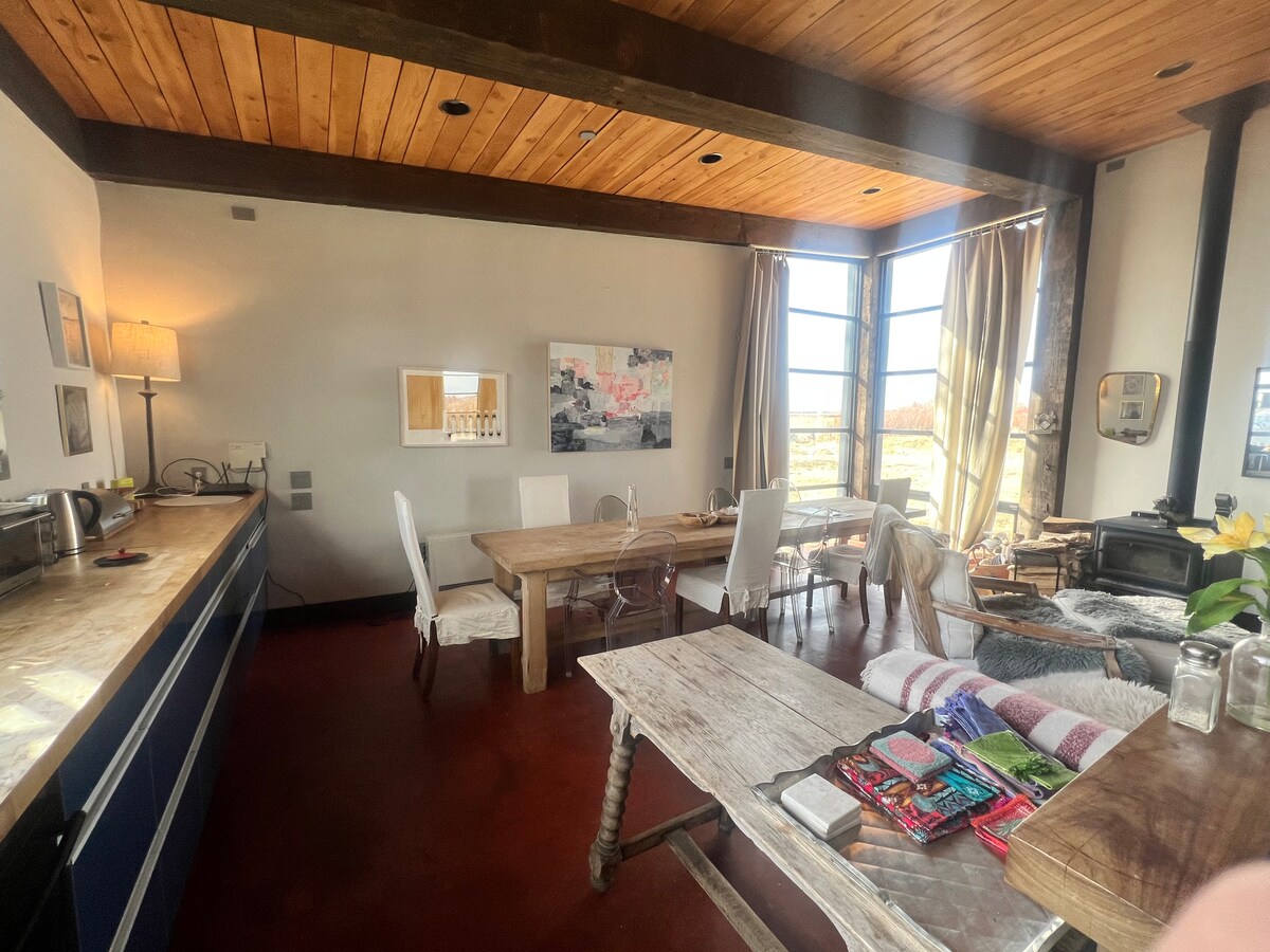 Esta casa moderna de techos altos y gran iluminación está situada justo cerca de la ciudad mientras está "fuera" lo suficiente como para disfrutar de las vistas infinitas de la montaña Taos (¿no es por esto que venimos a Taos?). Está a unos 3 kilómetros de la Plaza Taos. Hay mucho espacio para esparcirse, incluimos mucho estilo artístico (de verdad, no el estándar del suroeste...). Ofrecemos una bañera de hidromasaje, una habitación para niños con un loft, camas de látex, una pila de piñón para hacer fuego, vigas de madera recuperada, enormes ventanas, paredes de tierra apisonadas...