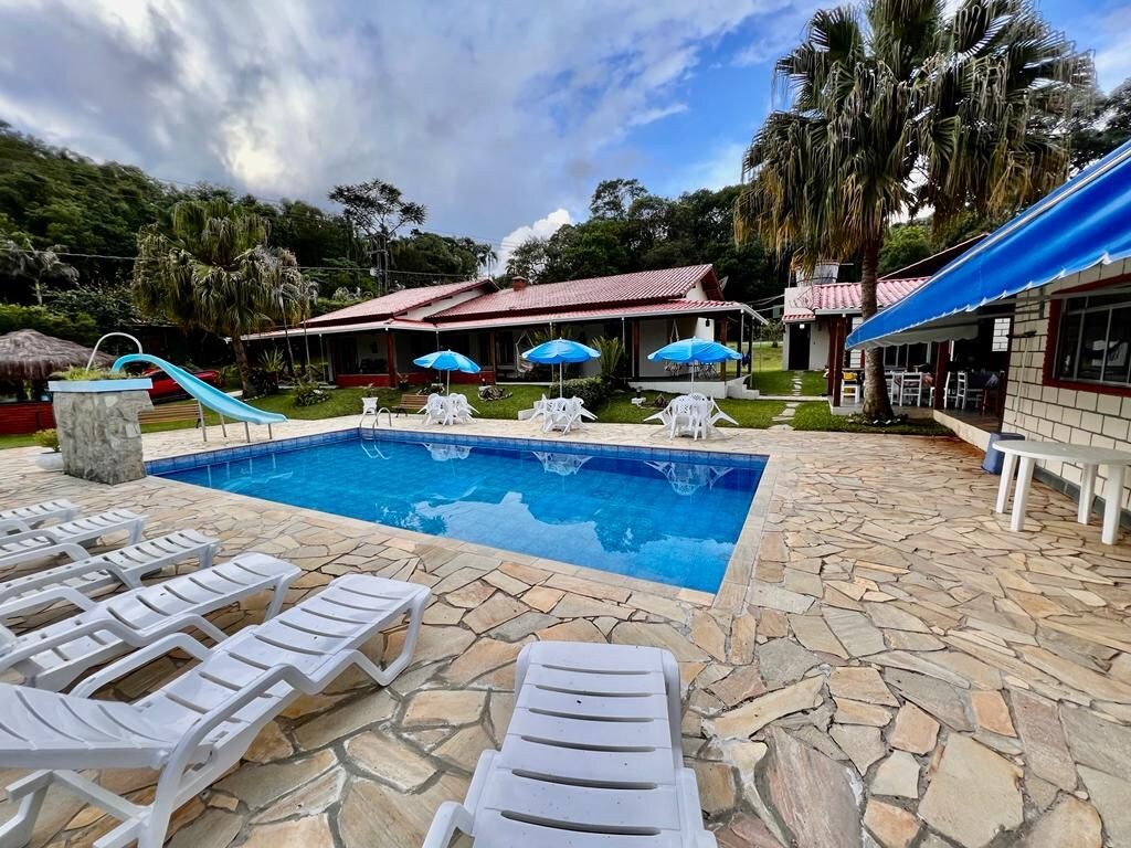 Leve toda a família a este ótimo lugar com muito espaço para se divertir. Venha passar o fim de semana em contato com a natureza, lagos para pesca esportiva, cachoeira, campinho volei/futebol, piscina adulta e infantil com churrasqueira, cantinho para fogueira e fogão a lenha.