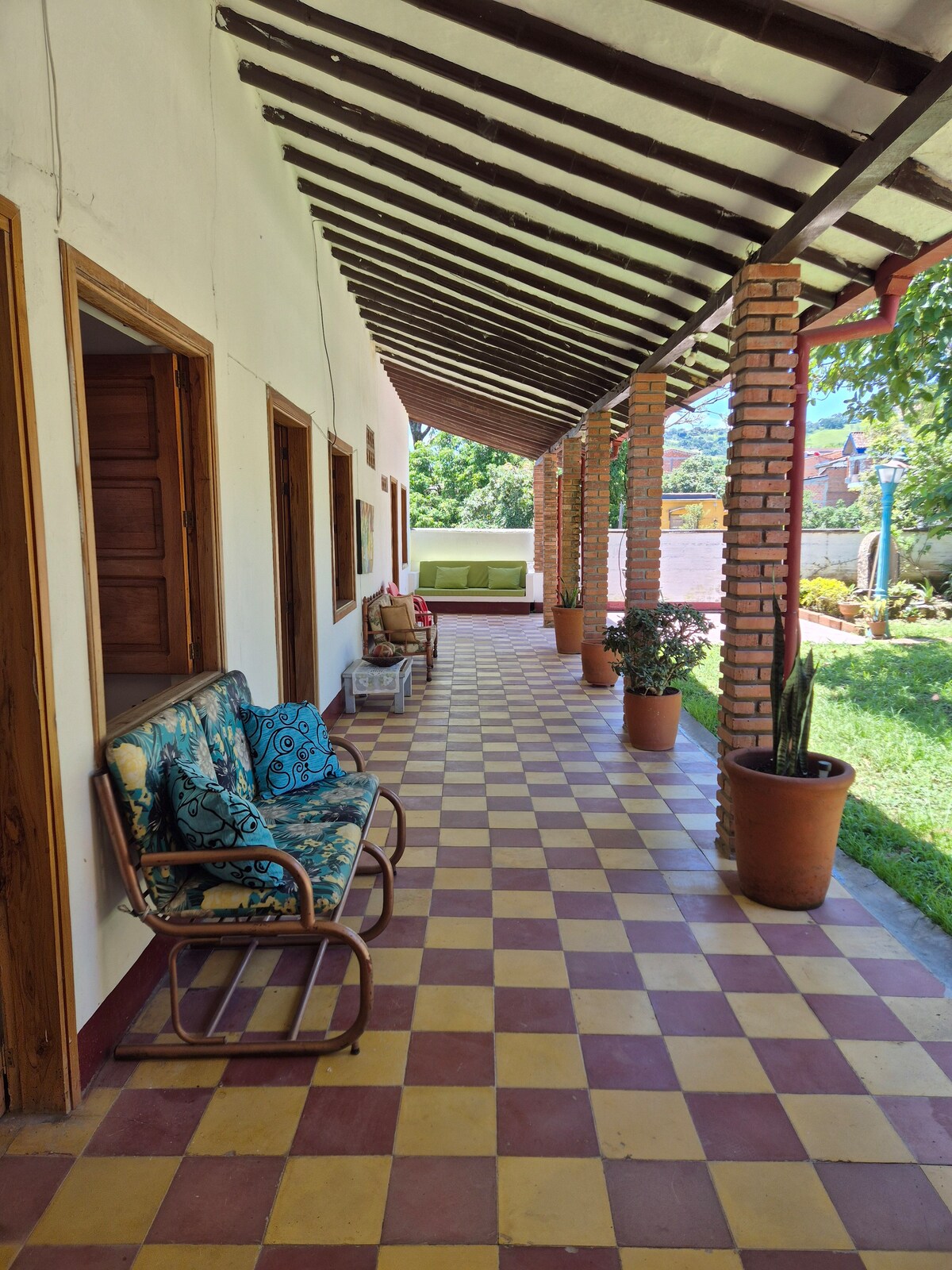 Tu familia estará cerca de todo cuando te quedes en este alojamiento céntrico. Esta apenas a dos cuadras del parque principal, zonas verdes, supermercados y droguerías cercanas, amplios, capacidad de hasta 12 huéspedes. la calle principal es muy amplia por lo que puedes dejar tu vehículo en frente de la propiedad. La casa tiene un patio muy amplio y un corredor donde es perfecto para reuniones familiares, asados, sancocho.