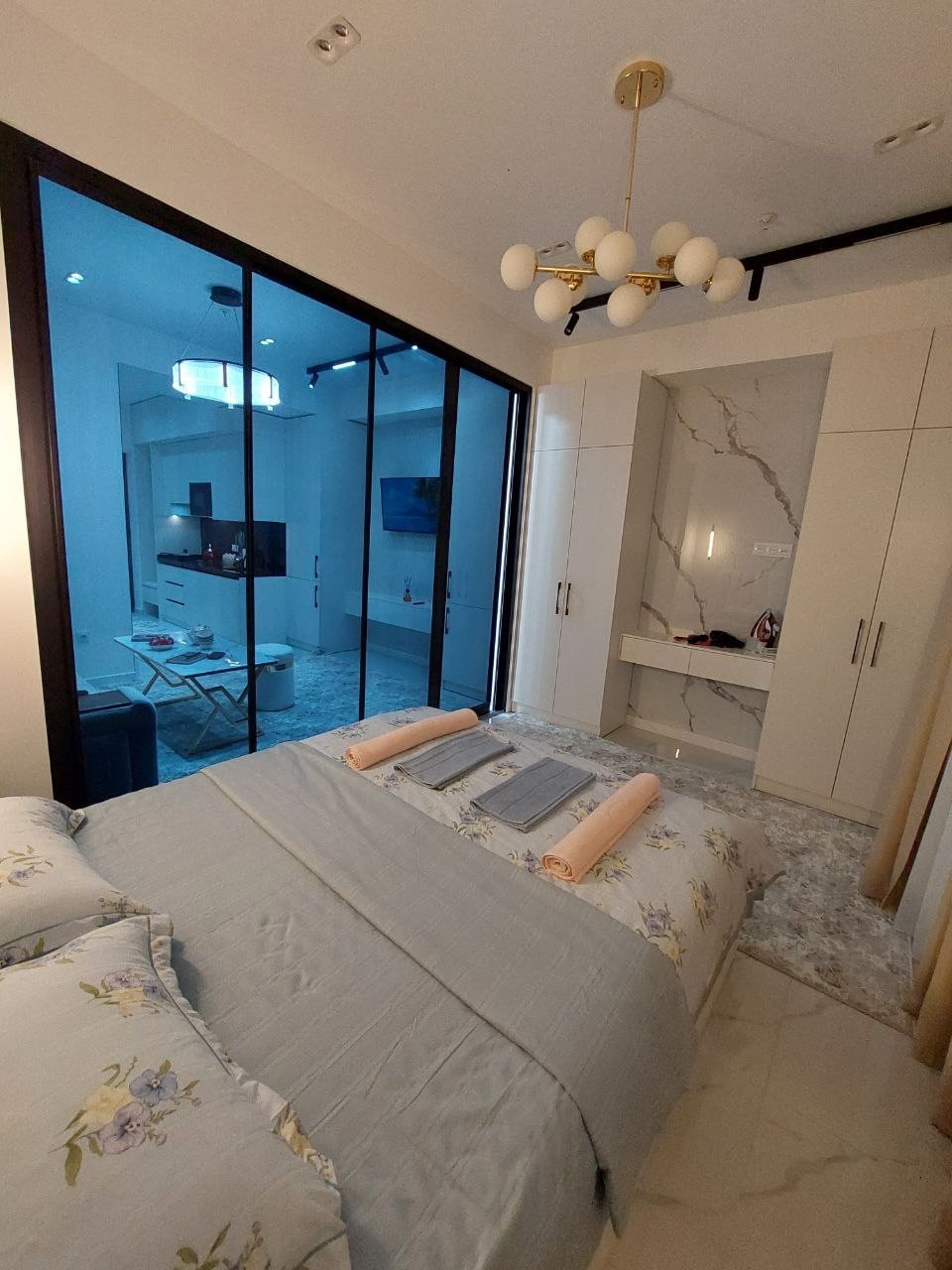 Apartamentos nuevos y acogedores para unas vacaciones relajantes. @gafurovana. Situado en el centro de Tashkent, cerca del aeropuerto internacional. La zona más popular para los huéspedes extranjeros, ya que hay muchos restaurantes con varias cocinas nacionales a pocos pasos. Muchos lugares para entretenimiento, mercados y áreas para caminar, parques, etc. El departamento cuenta con todo lo necesario para una estancia cómoda. Hay un dormitorio con una cama matrimonial y un sofá plegable (matrimonial completo).