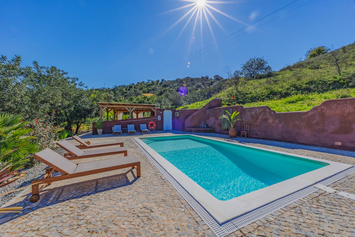 En nuestro alojamiento rural puedes disfrutar de agradables momentos familiares. Tienes a tu disposición una casa típica del Algarve con 1 dormitorio doble, 1 dormitorio con 1 litera con una cama doble debajo y individual por encima, sala de estar con cocina equipada, baño con ducha, aire acondicionado, barbacoa, lavandería, estacionamiento privado, jacuzzi privado y áreas comunes: piscina, jardín, parque infantil y área de juegos. Máximo 5 personas, con un máximo de 4 adultos. Las habitaciones se interconectan.