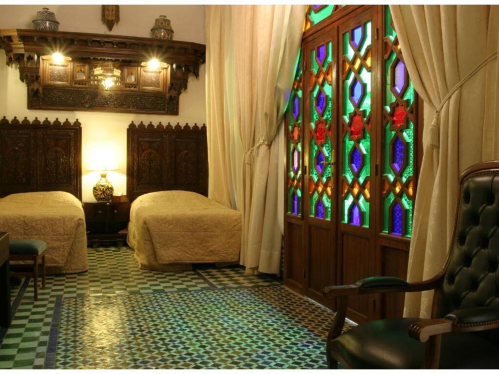 Mezcla con maestría el estilo marroquí atemporal con un diseño moderno Situado en el corazón de la antigua Medina Fez. Ofrece una experiencia inigualable. La amplia suite cuenta con un gran dormitorio, sala de estar adornada con baño privado de mosaico marroquí y aire acondicionado. Los muebles recogidos a mano y las telas exquisitas crean un ambiente de elegancia. Comienza el día con un delicioso desayuno en tu terraza privada y disfruta de la máxima paz y privacidad. ¡Experimenta la magia de Marruecos como nunca antes!