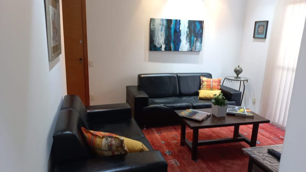 Este es un lugar único completo para su estadía, en el barrio de los funcionarios, a dos cuadras de la plaza de la libertad y de savassi, se encuentra en un edificio discreto, sin portero físico, de uso mixto tanto comercial como residencial, con 50m2. Con las comodidades de un mini GYM, despensa, escritorio, también equipado con lavadora, un baño completo y otro lavabo. Varias comodidades alrededor como estacionamiento, supermercados, panadería, farmacia, bares y restaurante.