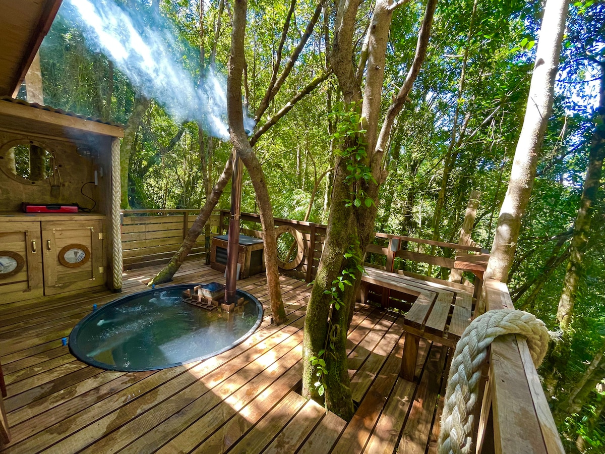 El refugio del capitán te invita a un relajante encuentro con la naturaleza y tranquilidad de sus Rios Navegables. Nuestras cabañas se encuentran insertas en el bosque, en medio de árboles nativos, conectadas con un hermoso puente colgante y una casa barco principal, llena de historias, cultura y arte. Las cabañas poseen una tinaja independiente con un valor adicional en el caso de que se requiera. No te pierdas esta gran experiencia de relajo y cultura Valdiviana