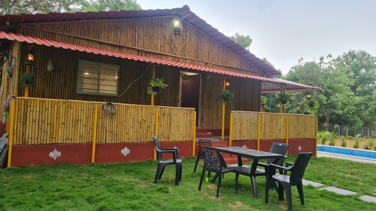 El número máximo de huéspedes de esta propiedad es de 15 pax. Mantenemos un precio fijo para 6 personas. Después de eso, el precio aumenta 500 por huésped. Un espacio privado único aislado en la lista media de la granja de mango. La casa de campo de estilo Kerela es perfecta para unas vacaciones memorables con jardines. Se permiten mascotas siempre con correa obligatoria. Vuelve a conectar con la naturaleza en esta escapada inolvidable. - Tamaño de la piscina * Longitud : 20 pies Ancho: 10 pies Profundidad: 4,5 pies